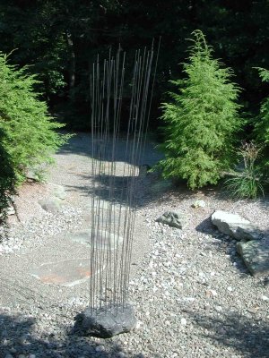 This simple vertical sculpture is interactive with the wind and will withstand winds to 55 mph creating a wind chime effect. |